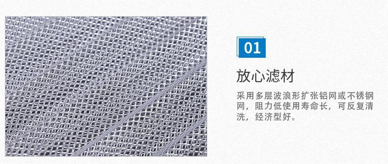鋁波紋網(wǎng)過(guò)濾器采用多層鋁網(wǎng)經(jīng)輾壓成波浪形,以正確的角度彼此交叉疊合排列而成,多層金屬鋁波紋網(wǎng)是以不同的密度,孔徑由粗到細(xì)的排列,使空氣通過(guò)濾網(wǎng)時(shí)多次改變流動(dòng)方向,增大其集塵能力及效率。